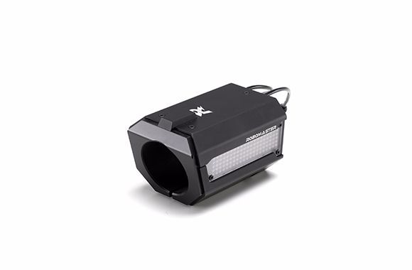 RoboMaster测速模块内置传感器,可实时测量枪管处所经过的弹丸速度及频率。其CAN接口(即航空线接头)根据裁判系统通信协议,将获取的弹丸的射速和射频数据实时发送给裁判系统主控模块。当测速模块检测到弹丸经过时,LED灯将会点亮进行提示,增加比赛的趣味性。