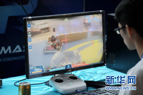6月6日,参赛选手在隔板后操控机器人汽车进行比赛。当日,全国大学生机器人大赛分赛区收官战在哈尔滨工程大学举行,吸引了11所高校的16支队伍参加角逐。比赛采用红、蓝双方对抗的形式,每场限时5分钟。参赛双方各派五名“汽车人”战将,在复杂地形中相互较量,进行“实弹”射击对抗,完成指定任务,最终由电子裁判系统判断比赛胜负。本届全国大学生机器人大赛共有全国各大院校的157支机器人战队获得参赛资格,分别在北京、上海、武汉、成都、西安、哈尔滨六大城市开展角逐。最终杀出重围的32支精英战队将在今年7月进军全国总决赛。