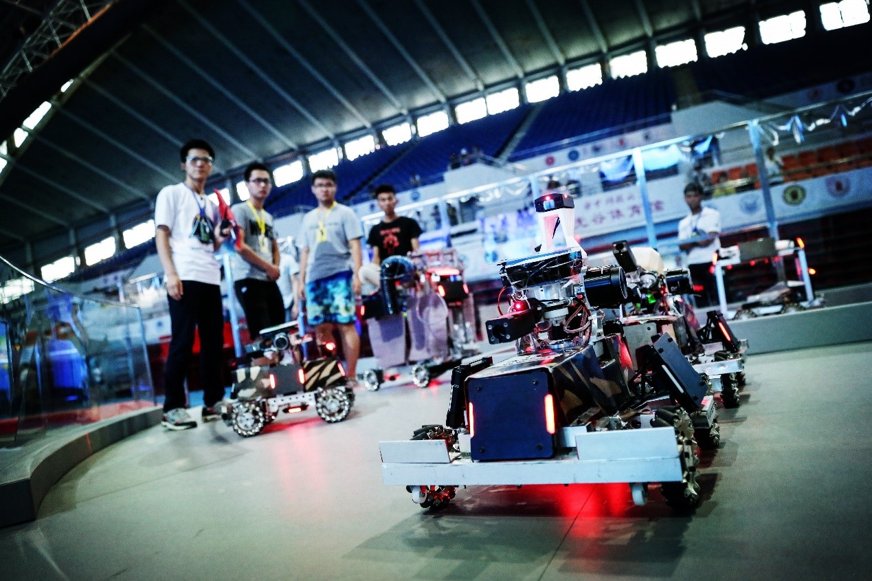 RoboMasters大赛是全球规模最大的机器人赛事之一。与其他机器人大赛不同,RoboMasters采用“机器人战争”形式,由参赛队伍自主设计英雄机器人、步兵机器人和空中机器人(无人机)等5个机器人参赛,在复杂战场中发射“弹丸”进行对战。